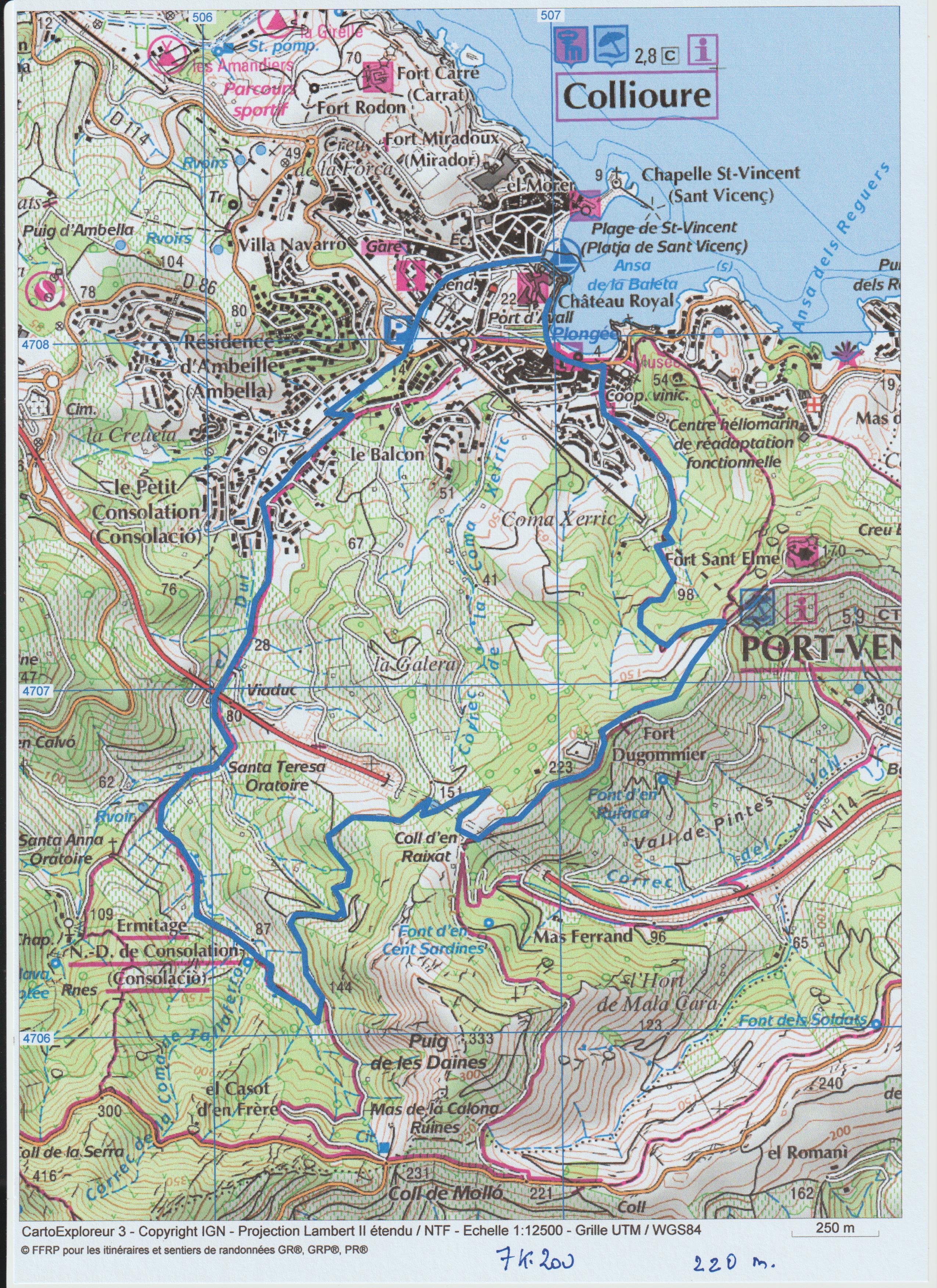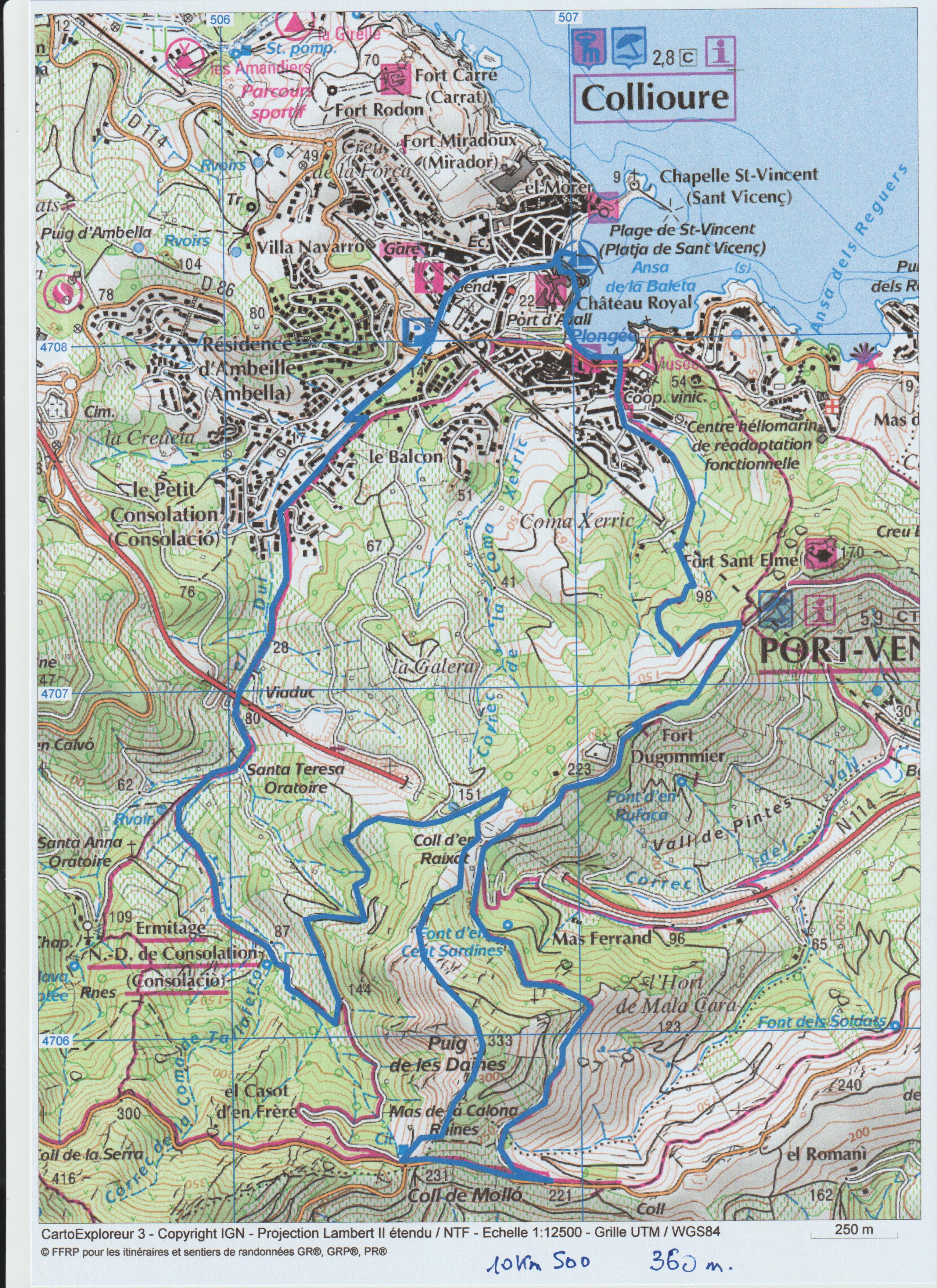À 9h30, départ du circuit de 10 kilomètres (300 m de dénivelé). L’itinéraire passe par le Fort Saint-Elme, Dugommier, le Col de Mollo, l’ermitage de Consolation, avant un retour dans le village.